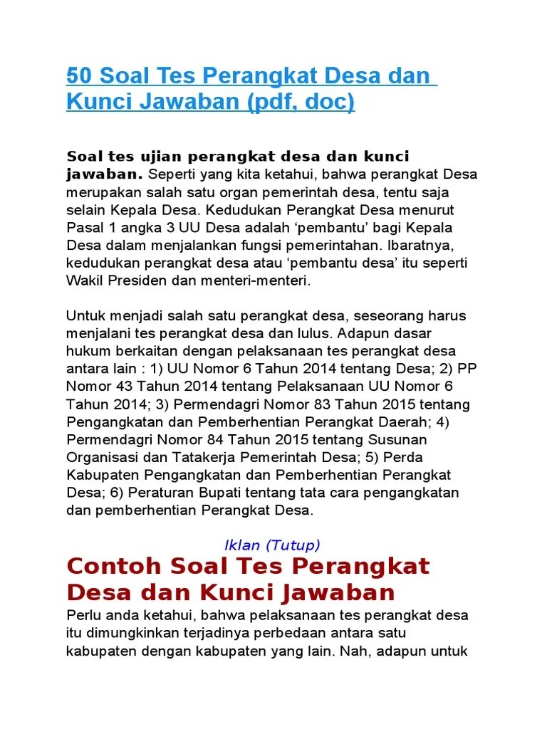 100 contoh soal ujian tulis perangkat desa 2020 dan kunci jawaban pdf download.