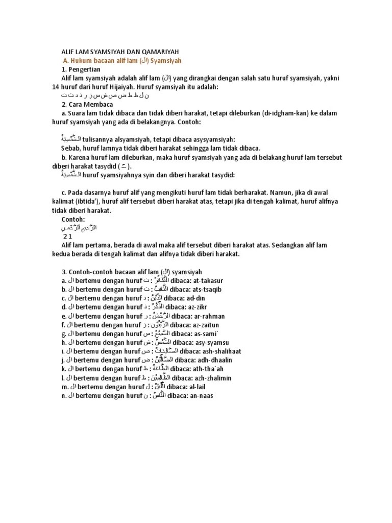 Hukum bacaan alif lam terbagi menjadi 2 berdasarkan cara bacanya, yaitu syamsiah dan qomariah. Hukum alif lam terbagi menjadi 2 yaitu alif lam qomariah dan alif lam syamsyiah. Pengertian alif lam qamariah , contoh alif lam qamariah, contoh alif lam qamariah dalam al qur'an. Pengertian alif lam syamsiyah dan alif lam qomariyah. Pada pembahasan tersebutlah kita juga .
